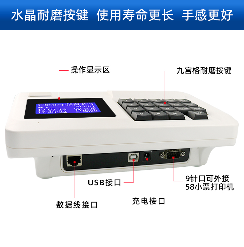 ● 机器上有较多功能按键,可做以下设置:计次就餐设置、计值就餐设置、菜单式餐价设置、高消费限额设置、就餐设置、报餐设置、充值设置;可直接在机器上查询:就餐数据、充值数据、报餐数据。
